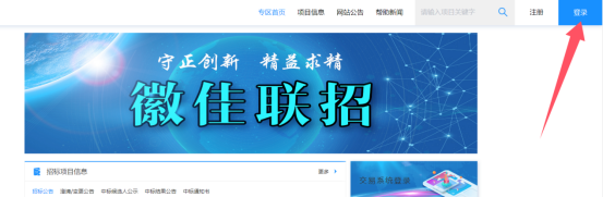 1、打开徽佳联招招标采购电子交易平台http://www.jiafuzixun.com